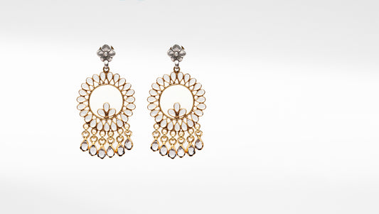 Chandelier earrings are elaborate and often feature multiple tiers of gems and intricate designs. They are perfect for adding a touch of sophistication and glamour to evening attire.Chandbali Earrings