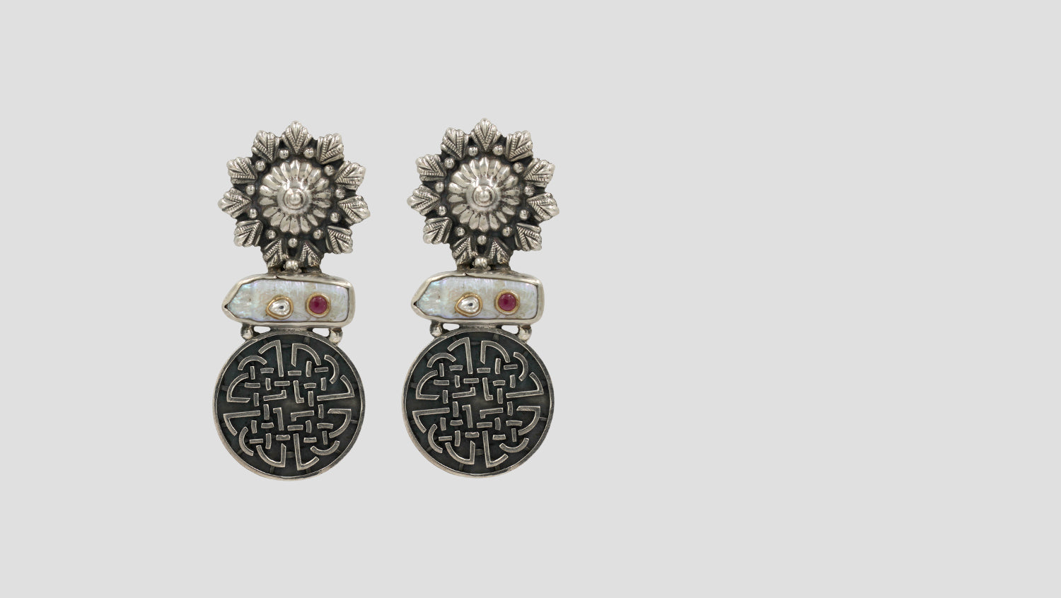Oxidised Silver Floral Earr...