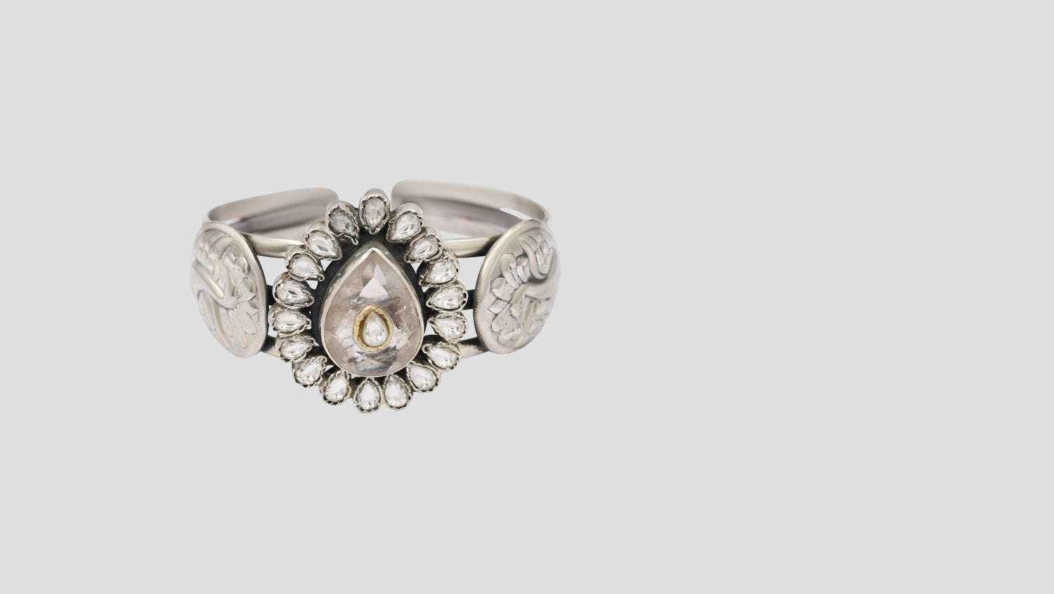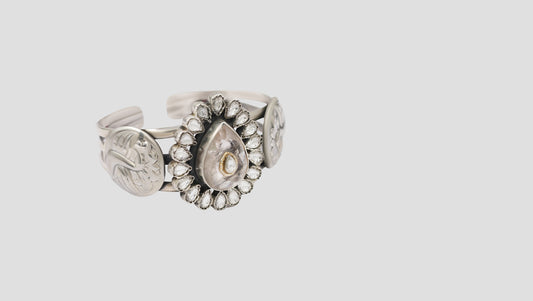 Silver Bangle With Kundan A...