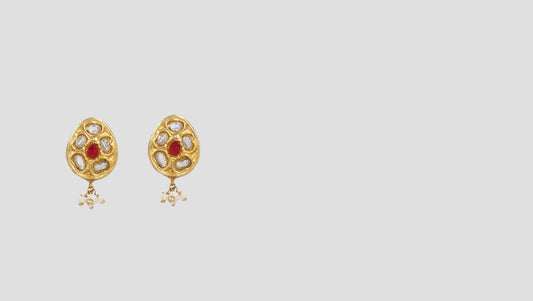 Lotus Kundan Pearl Drop Ear...