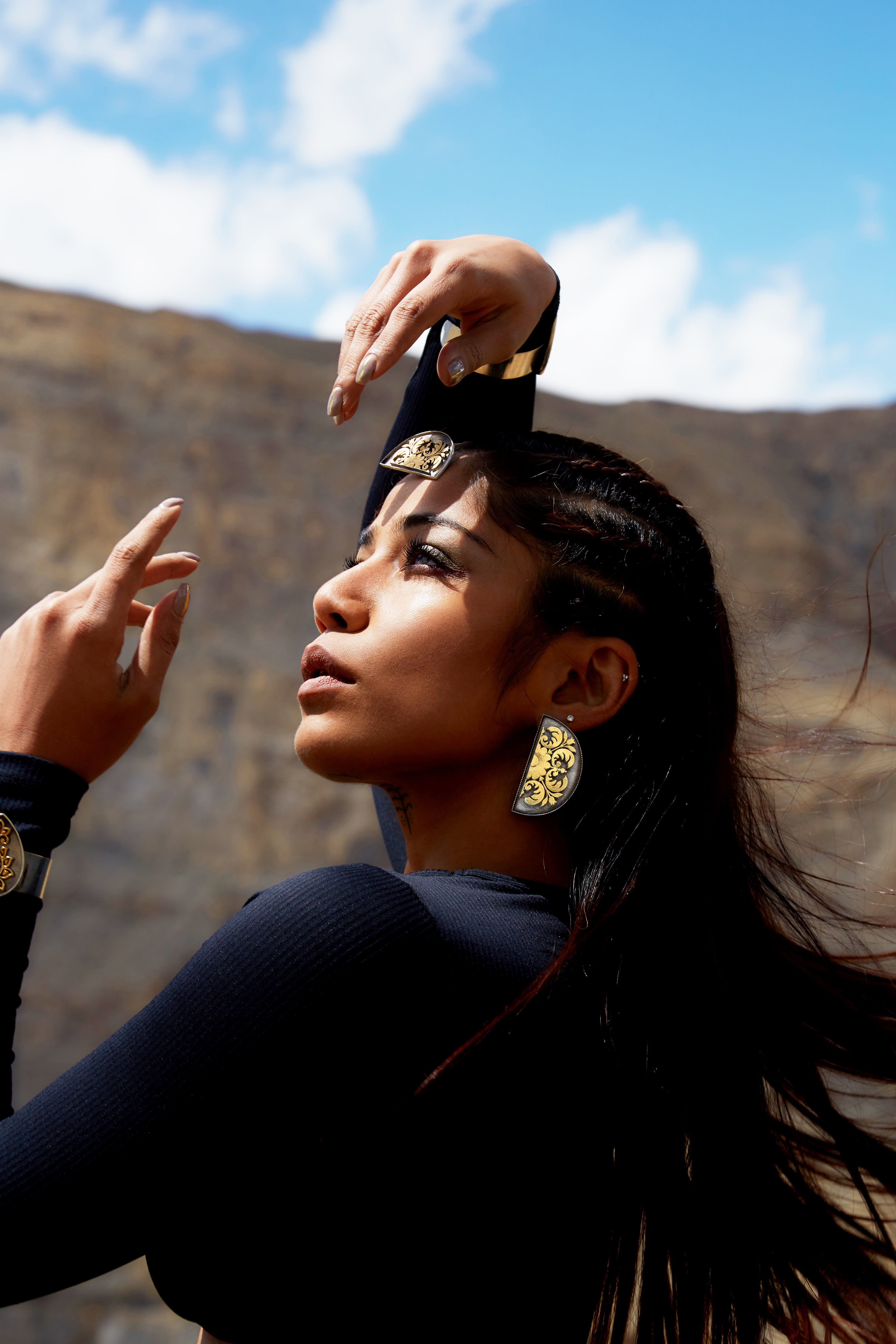 Silver Handcrafted Earrings and Adjustable Hand Cuff with 24K Gold Plating