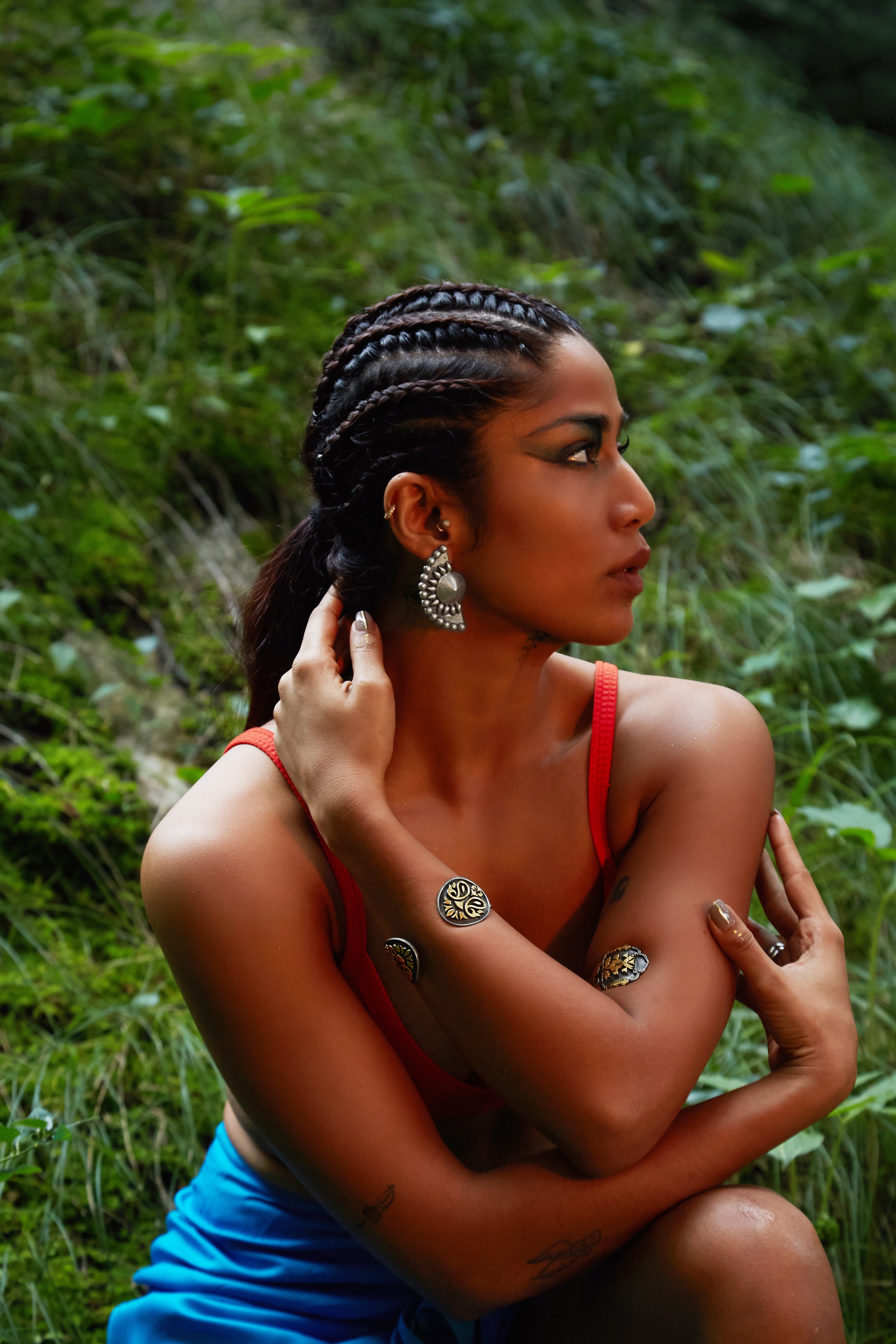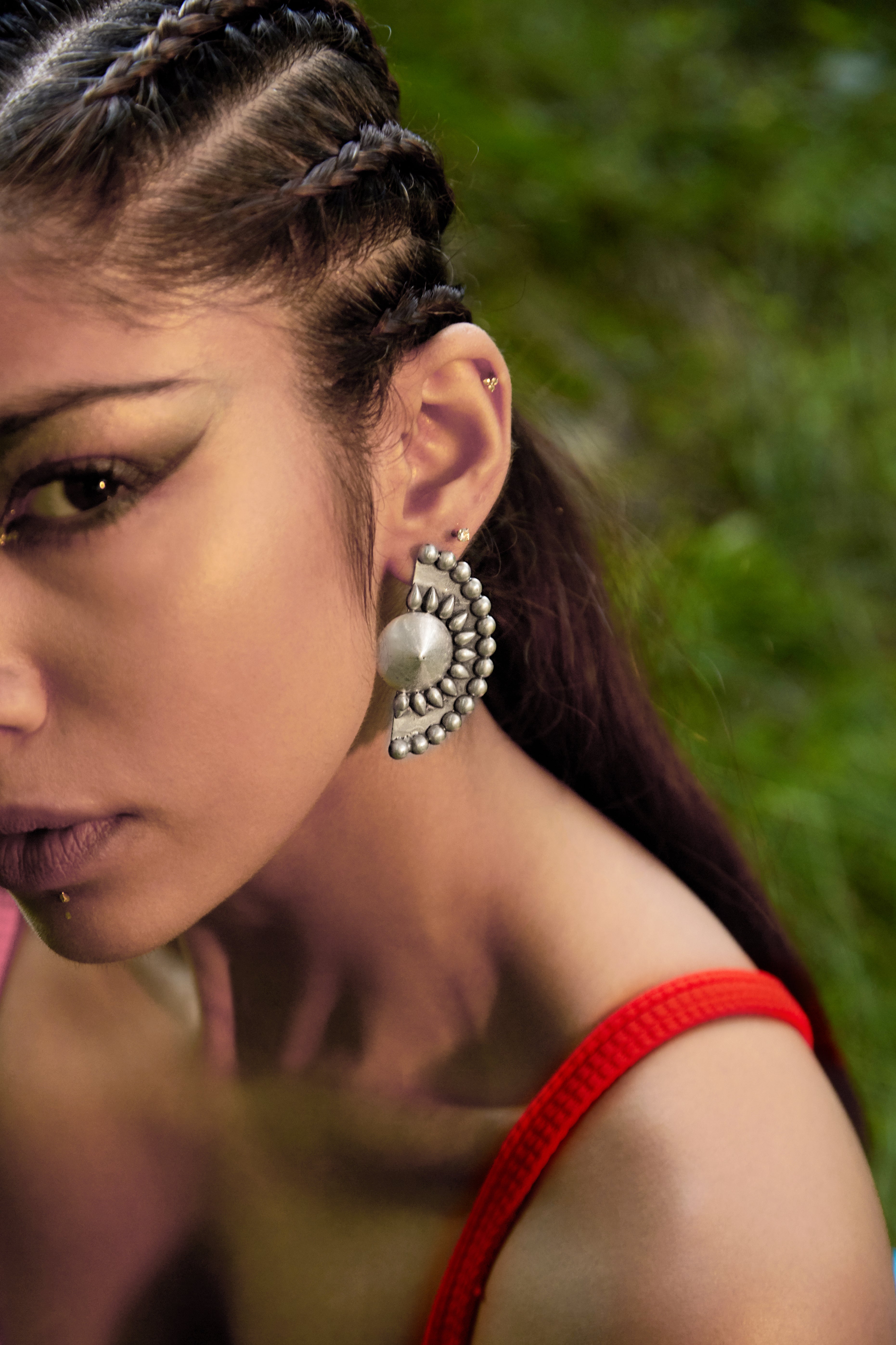 Silver Handcrafted Earring, Two Adjustable Hand Cuffs, and Ring with 24K Gold Plating