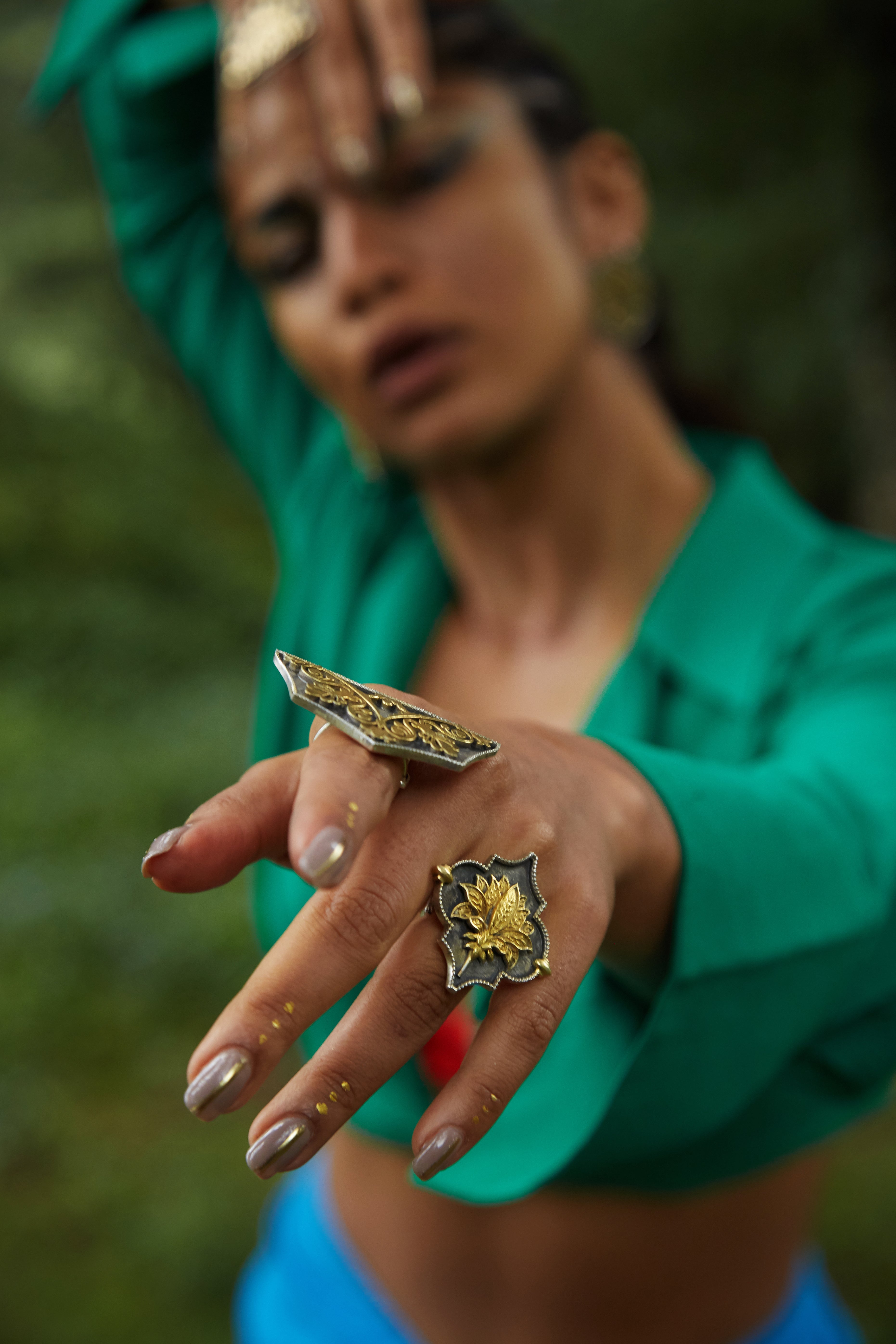Silver Handcrafted Two Rings with 24K Gold Plating