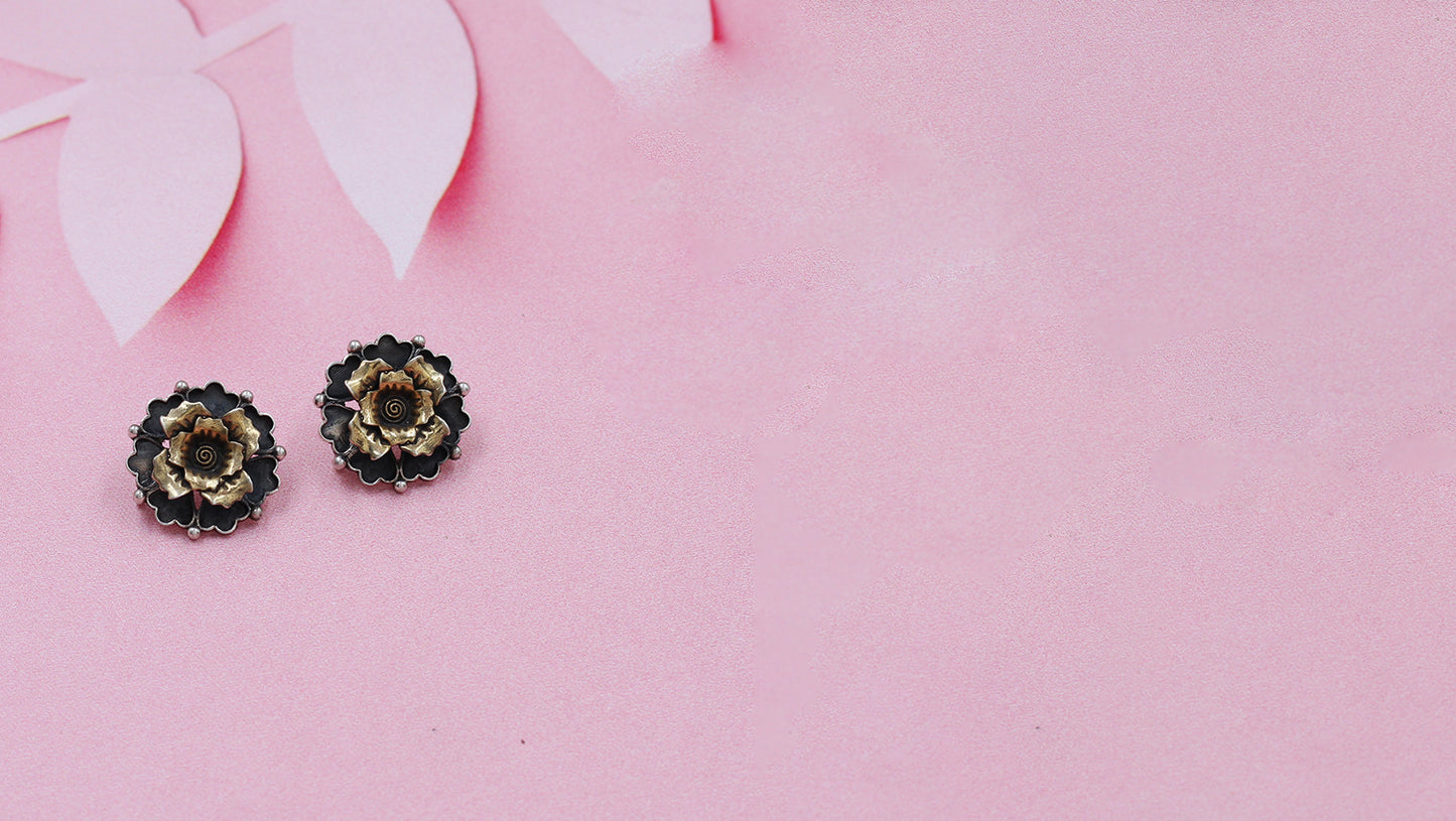Elevate your jewelry collection with these exquisite handcrafted 925 silver floral stud earrings. Featuring an antique gold-tone flower centerpiece against an oxidized silver backdrop, this piece blends vintage aesthetics with contemporary charm.