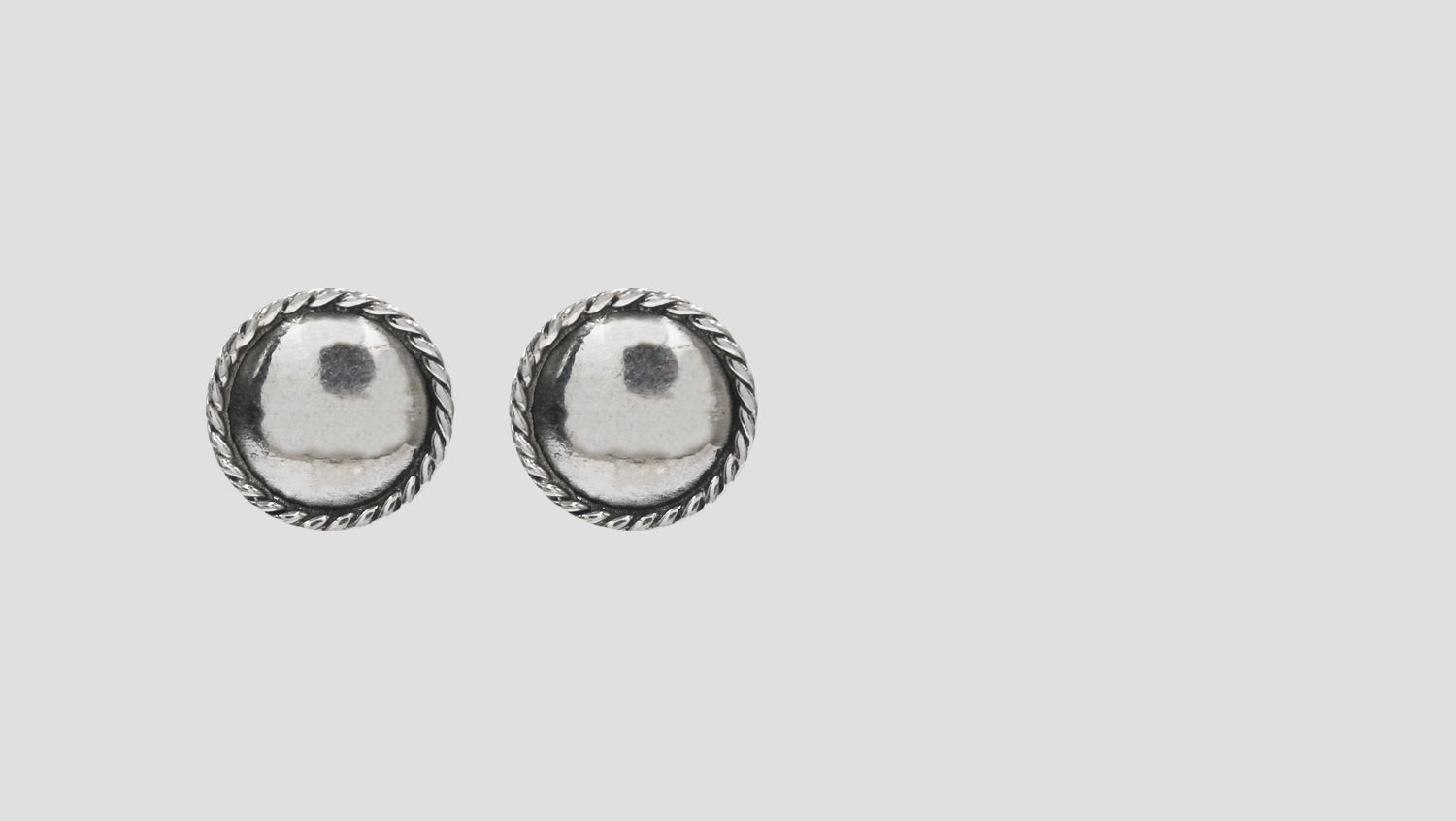 A symbol of timeless elegance, these round silver studs feature a polished finish and delicate rope-edge detailing, handcrafted by Sangeeta Boochra artisans.