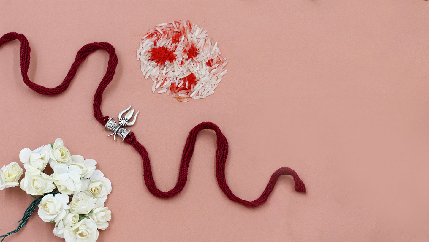 Celebrate the eternal bond of sibling love with this handcrafted silver rakhi by Sangeeta Boochra. Featuring Lord Shiva’s iconic Trishul and Damru motifs, this rakhi is more than an ornament — it's a talisman of strength, protection, and divine energy.