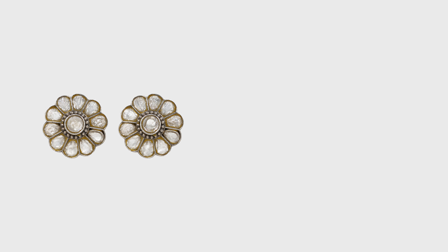 Embrace the elegance of heritage craftsmanship with these exquisite handcrafted silver floral studs by Sangeeta Boochra. Inspired by the eternal beauty of nature, each stud is shaped like a delicate blooming flower, featuring hand-set uncut stone detailing that radiates a timeless charm.