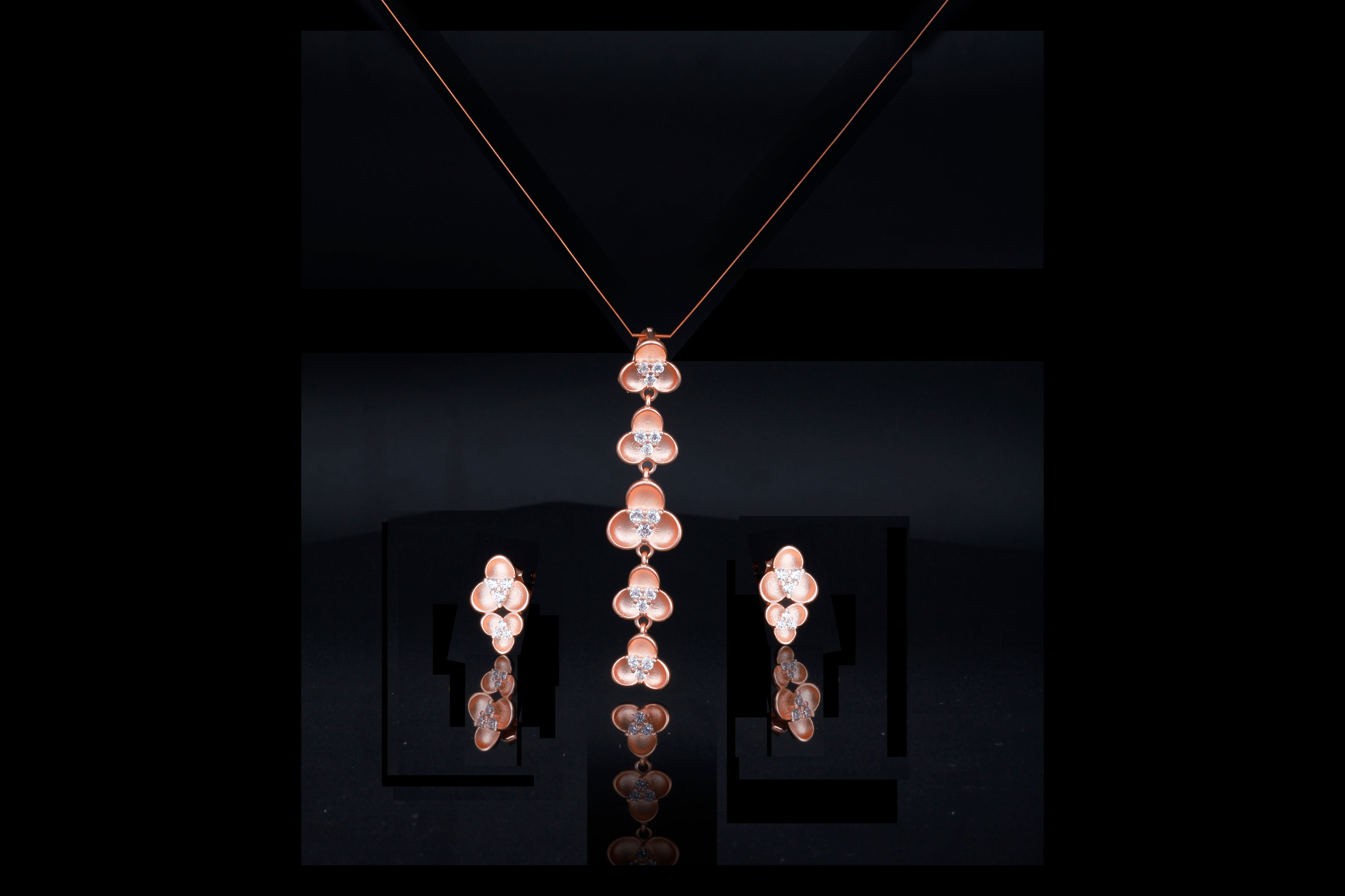 Add a perfect finishing touch to your look by wearing this rose gold plated silver pendant with earrings. Pendant=1.96Earring=0.55