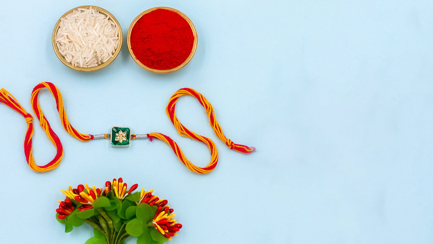 "Celebrate Raksha Bandhan with this striking silver rakhi, adorned with a regal green enamel center and delicate gold flower accents. An artistic expression of love and tradition from the house of Sangeeta Boochra."