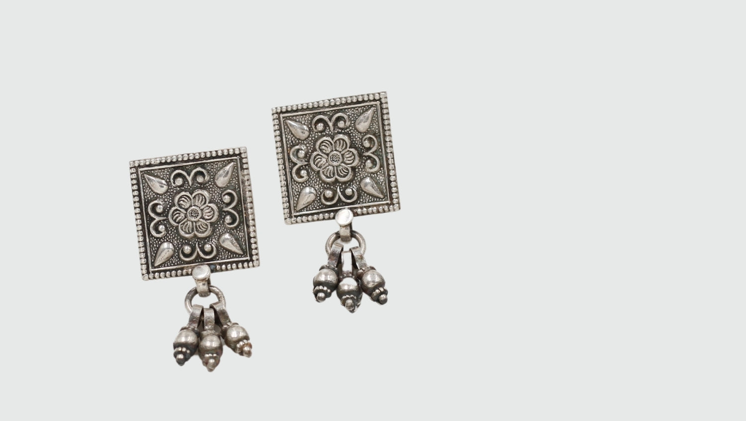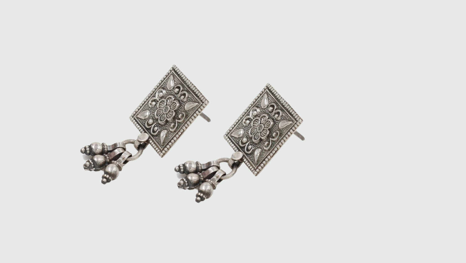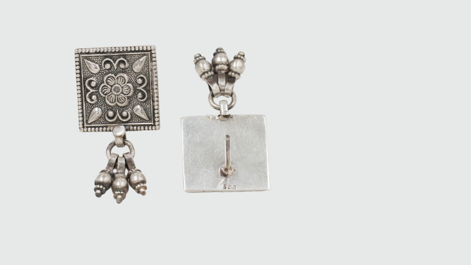 With Refined Grace, a set of handmade silver earrings by Sangeeta Boochra that epitomize classic sophistication, you may enter a realm of luxury. Each exquisitely detailed earring, which is made from fine 925 sterling silver, features intricate designs and a polished, glossy finish.