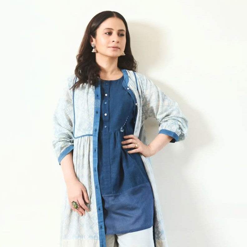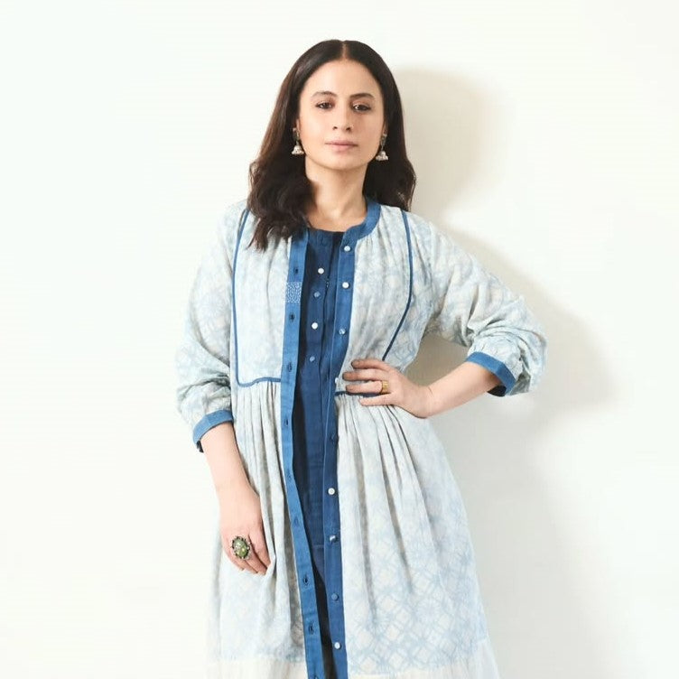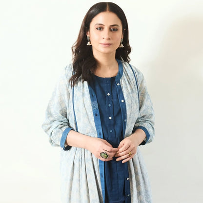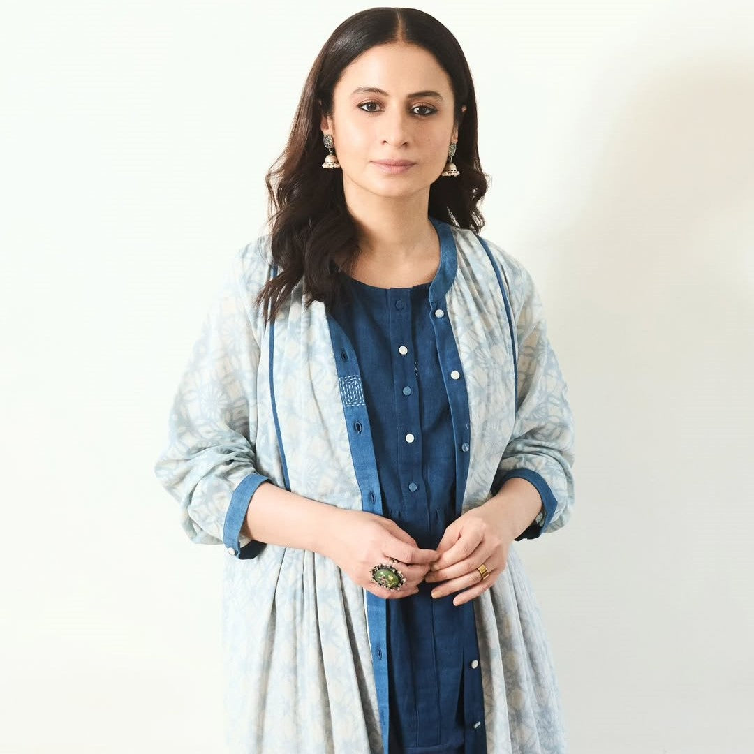 A celebration of simplicity and strength—Rasika Dugal’s ensemble is elevated by Sangeeta Boochra’s silver artistry. The earrings add a whisper of tradition, while the signature ring makes a bold cultural statement—perfect for the contemporary connoisseur of craft.