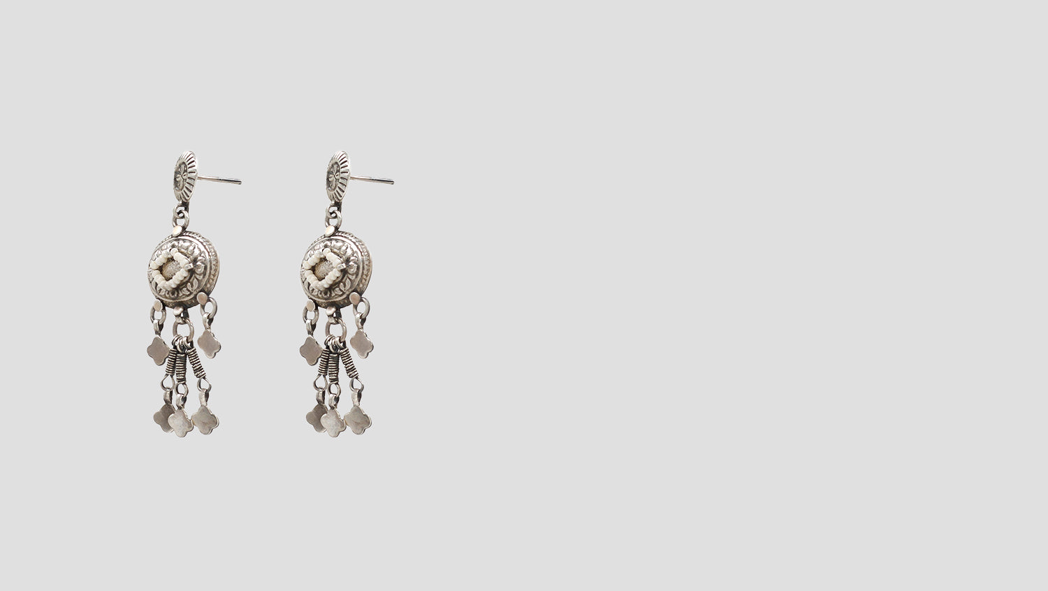 A timeless blend of elegance and tradition, these 925 silver earrings feature a stunning engraved centerpiece, surrounded by ornate beaded details and delicate dangling charms. Their handcrafted allure adds a sophisticated touch to any ensemble.