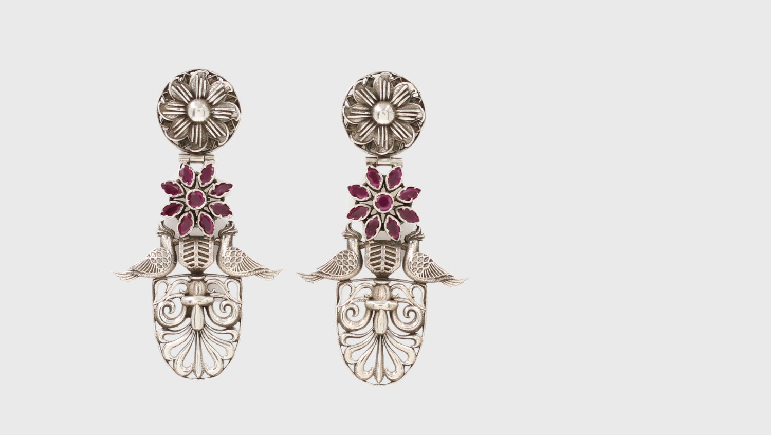 Embrace the grandeur of Sangeeta Boochra Majestic Grace Silver Handcrafted Earrings. These exquisite earrings are a perfect fusion of elegance and artistry, meticulously handcrafted from premium silver to create a piece that radiates sophistication.