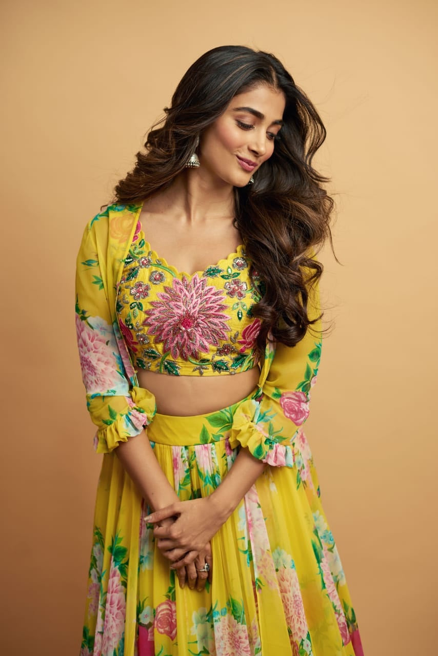 Beautiful Pooja Hegde flaunting her style in Sangeeta Boochra handcrafted silver Jhumka earrings.