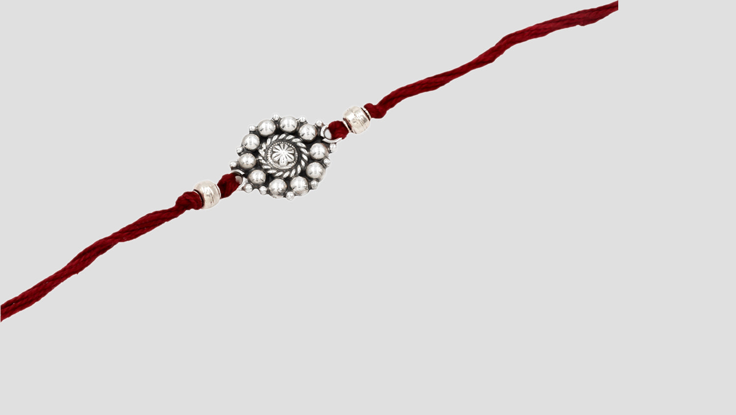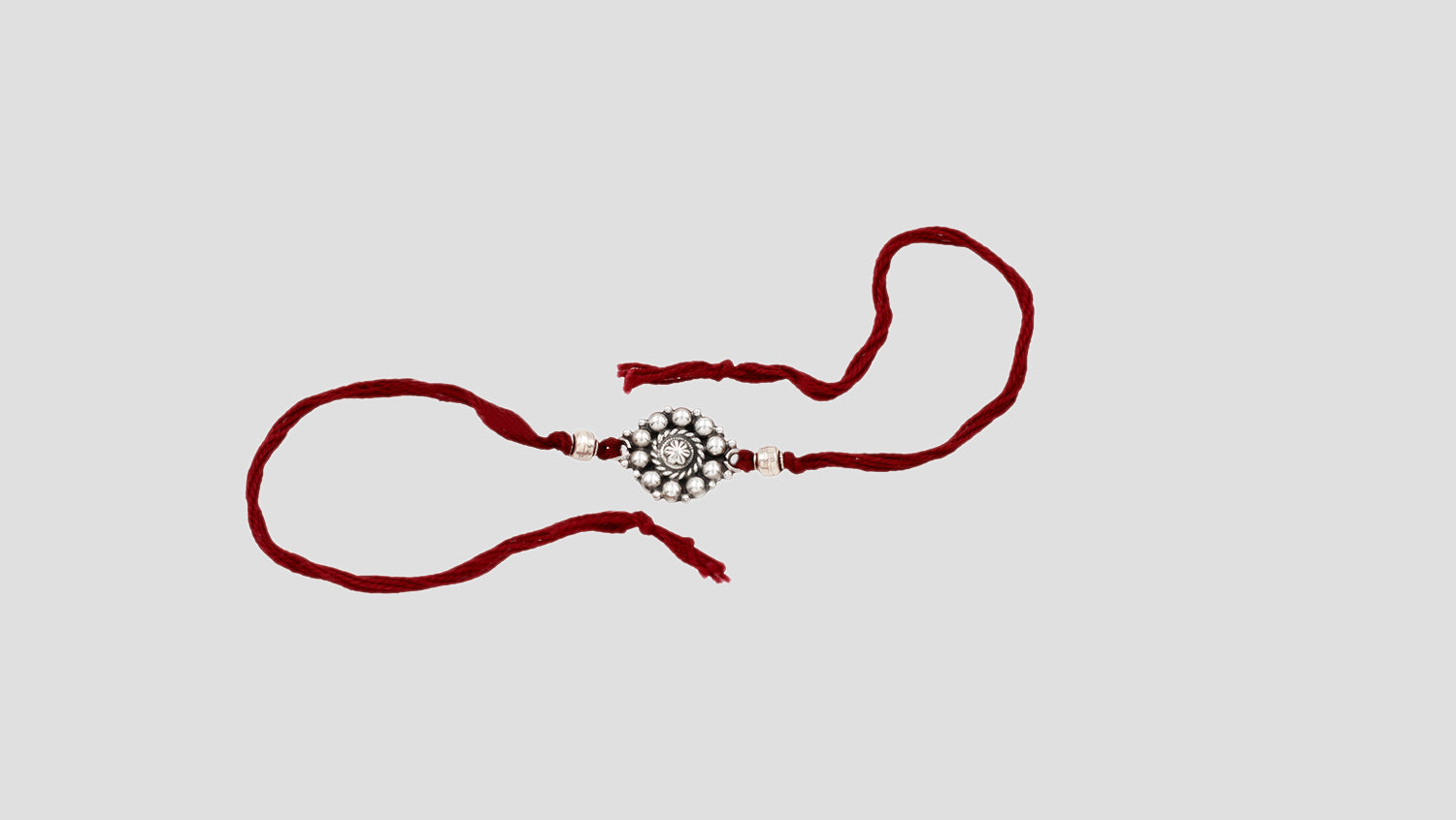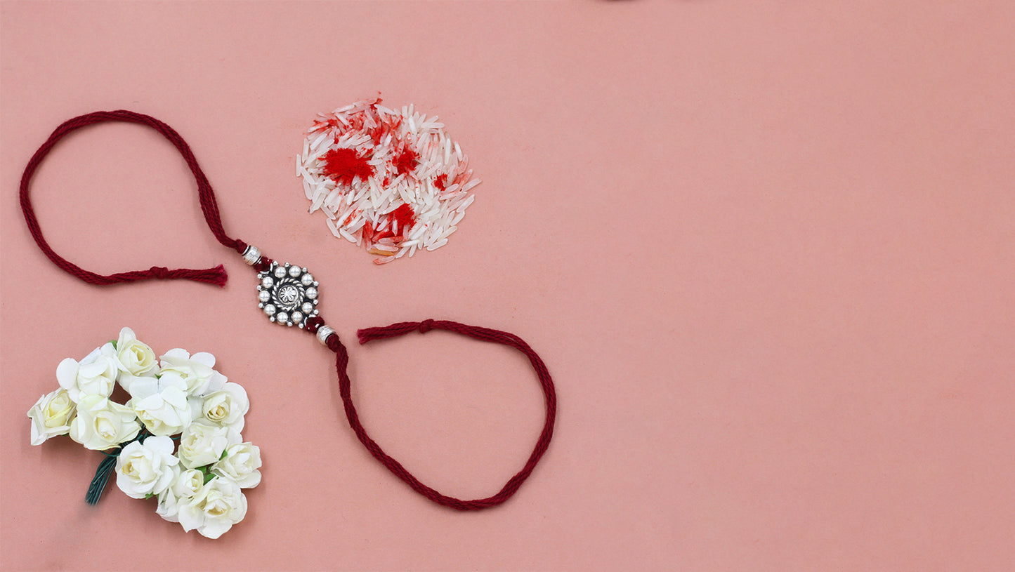 Inspired by the radiance of the sun and the symmetry of a mandala, this silver rakhi by Sangeeta Boochra is a symbol of light, love, and protection. A handcrafted heirloom to honor the brother-sister bond.