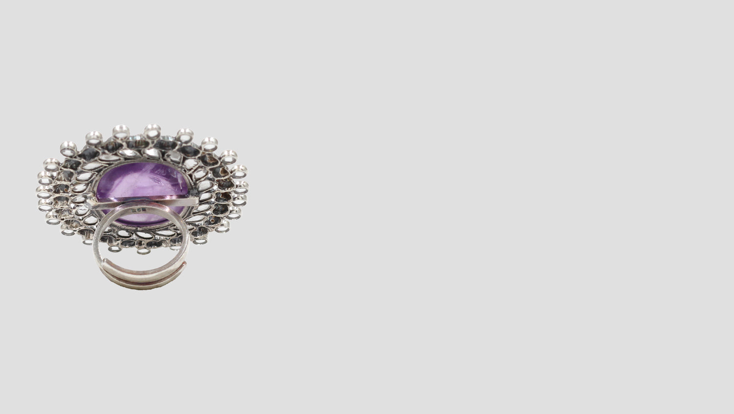 Timeless Craftsmanship: Elevate your jewelry collection with this exquisite amethyst and silver ring. Designed by Sangeeta Boochra, this ring exudes vintage charm with its handcrafted detailing and luxurious appeal.