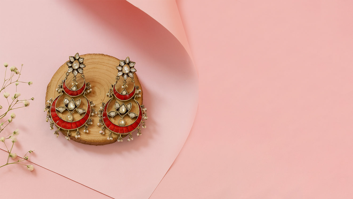 Handcrafted in sterling silver, these exquisite earrings by Sangeeta Boochra showcase a stunning combination of lotus motifs, crescent-inspired red enamel work, and traditional kundan embellishments. The intricate dangling accents add graceful movement, making them perfect for festive wear, weddings, and special occasions. A true reflection of Indian craftsmanship and contemporary elegance.
