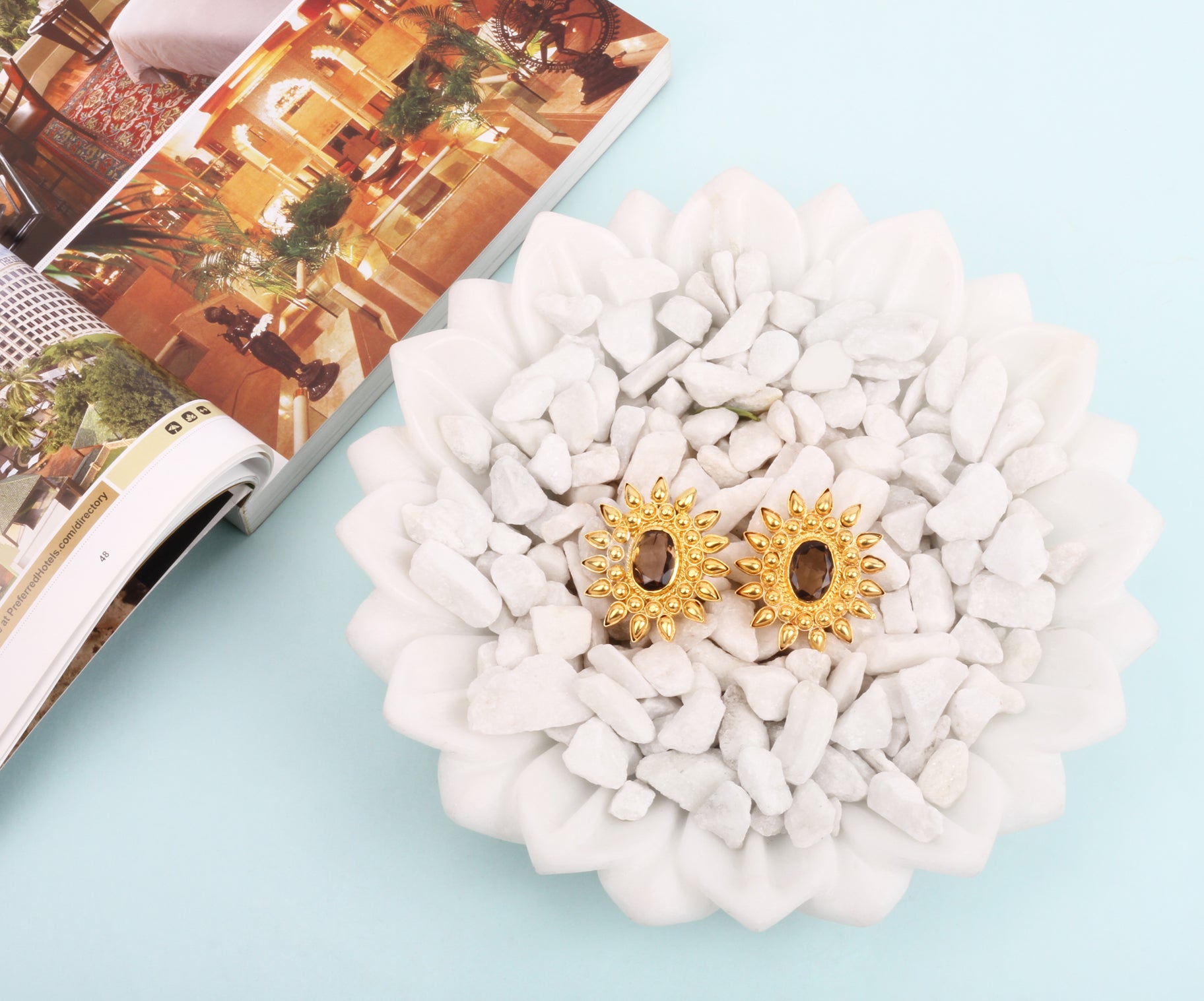 Handcrafted Silver Earrings With 24k Gold Plated And Hydro Coloured Glass Stone