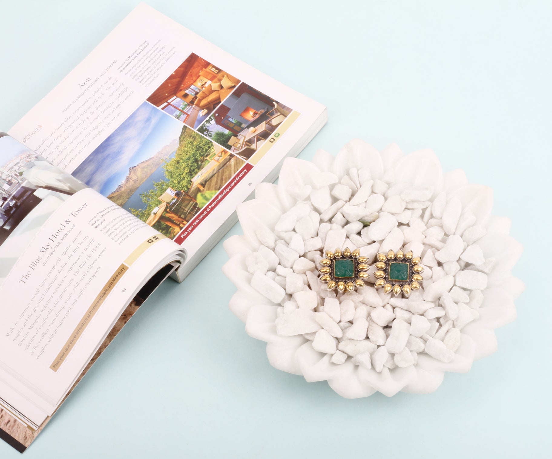 Handcrafted Silver Earrings With 24k Gold Plated And Hydro Coloured Glass Stone