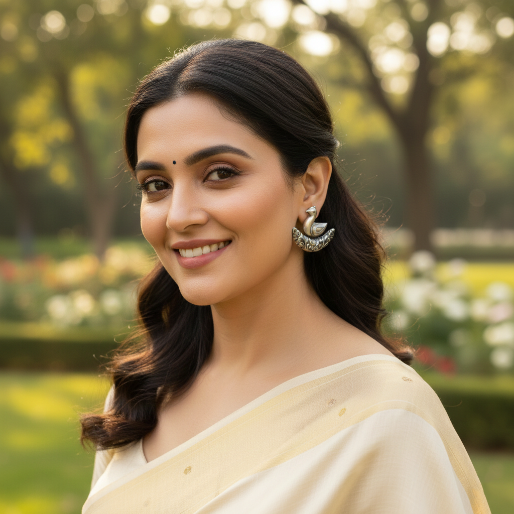 Crafted in oxidised silver, these Sangeeta Boochra earrings showcase a unique bird-inspired design paired with intricate floral engravings. A bold yet wearable piece that adds character to casual and ethnic looks.