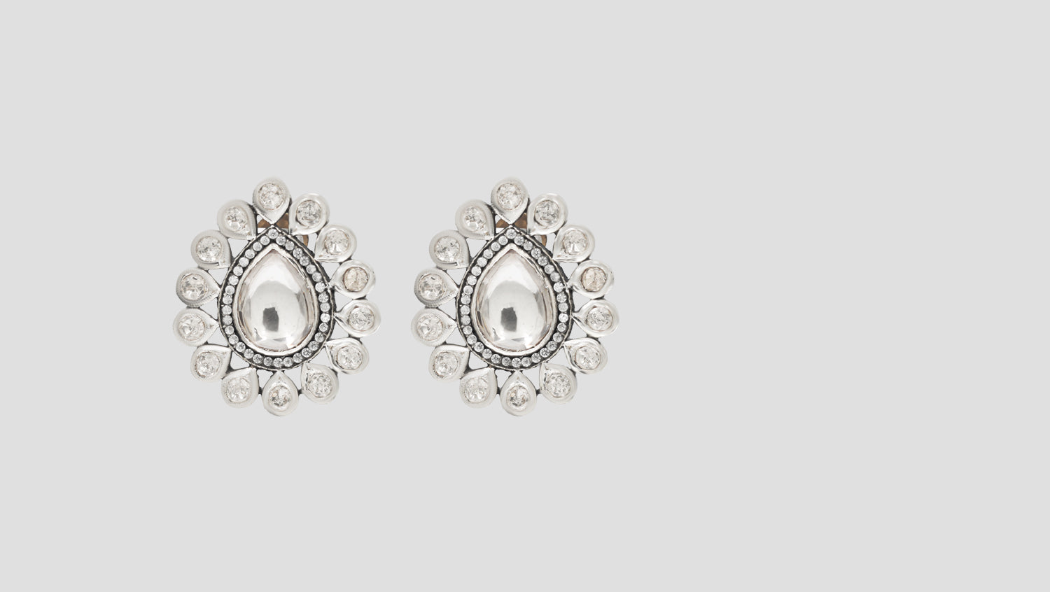 Radiate grace and luxury with these teardrop moissanite silver earrings by Sangeeta Boochra. Handcrafted in 925 sterling silver, they blend heritage charm with modern brilliance.