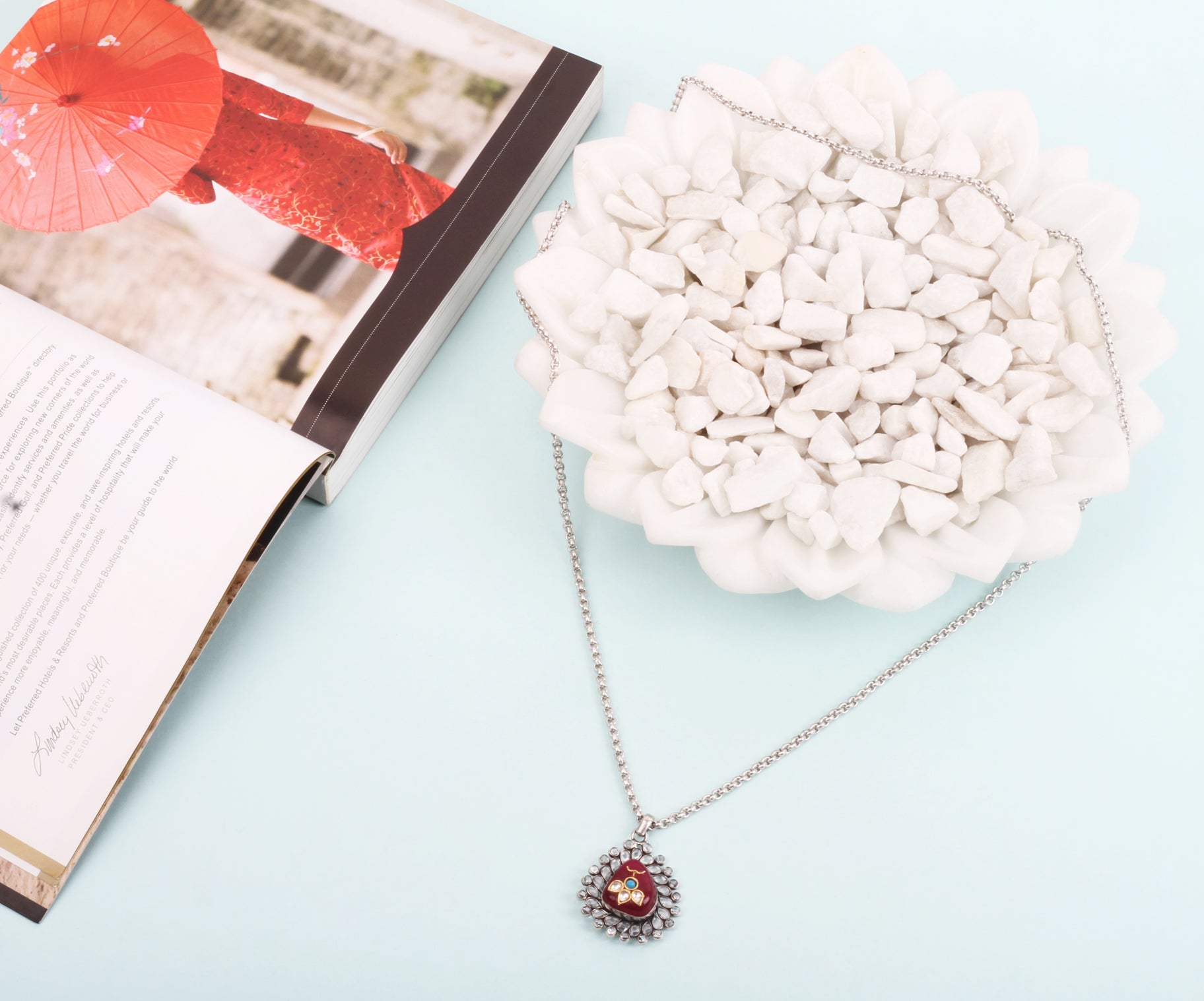 Handcrafted Silver pendant With Turquoise And Kundan stone