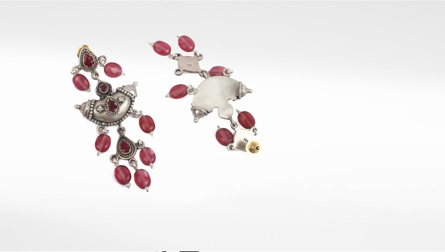Sangeeta Boochra Pink Tribal Silver Earrings