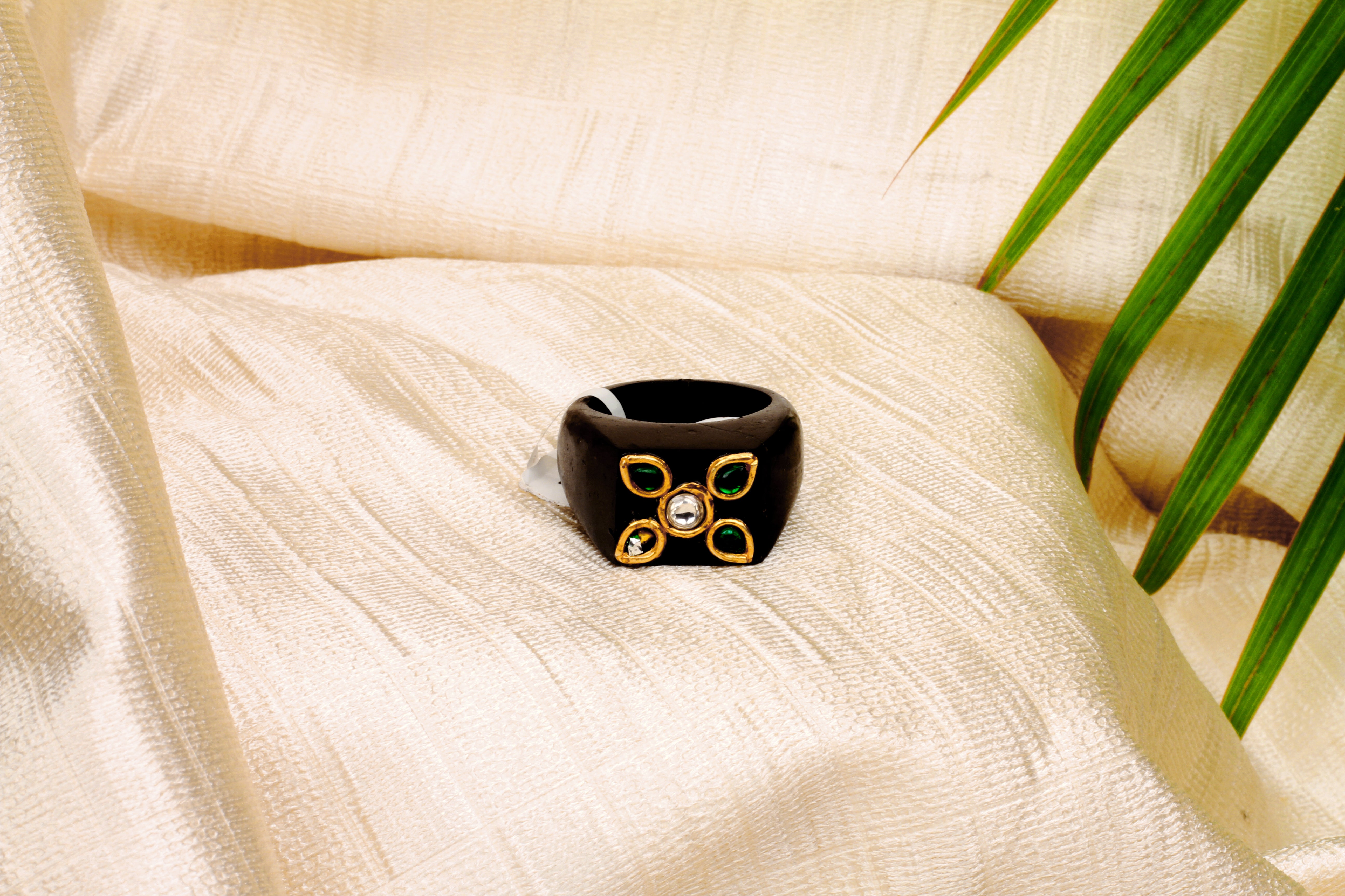 Quartz Gemstone Ring with Gold Plated Inlay Work