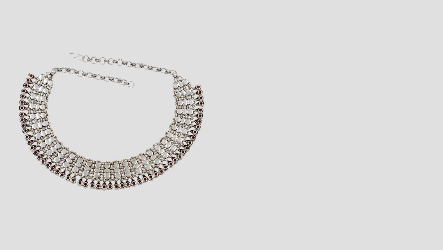 Indulge in the beauty of heritage craftsmanship with this handcrafted 925 sterling silver Necklace. Adorned with intricate gold-tone floral motifs and stunning red gemstone drops, this piece radiates royal elegance and charm.