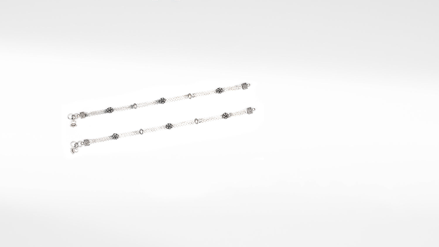 Procure an impeccable look by donning this pair of anklets. These anklets are made of silver and is sure to mesmerize everyone around you. It will elevate your look in an instance. Team it with any attire of your choice and look your elegant best, effortlessly.