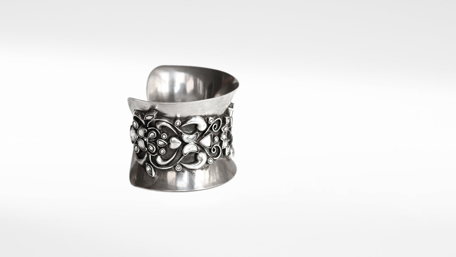 Add a touch of glam to your festive look by wearing this bangle from Sangeeta Boochra. Handcrafted from silver and adorned with CZ stone, it manifests extraordinary craftsmanship. Wear it with a saree to make a style statement.