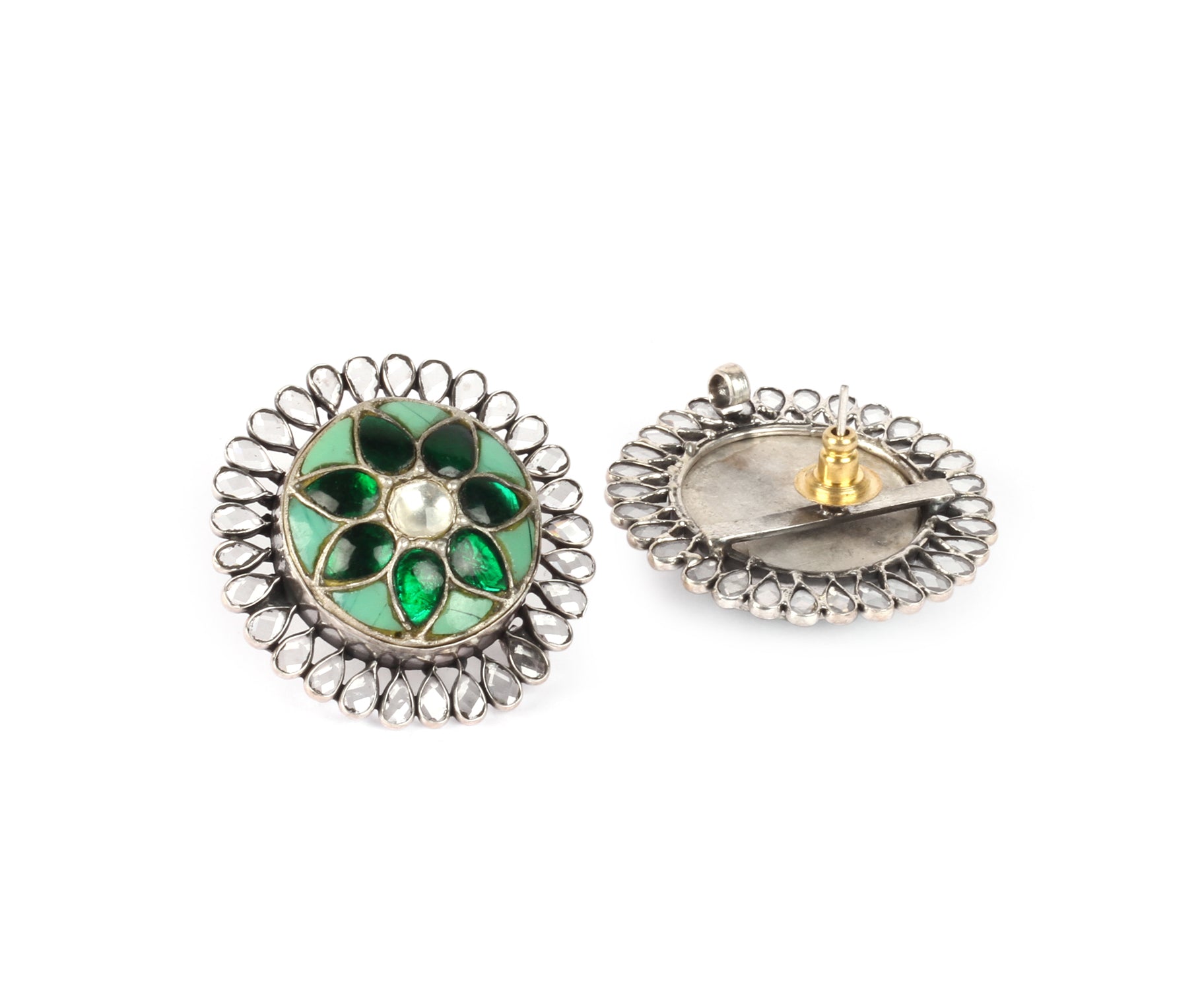 Handcrafted Silver Earrings Turquoise And Green Onyx Stone