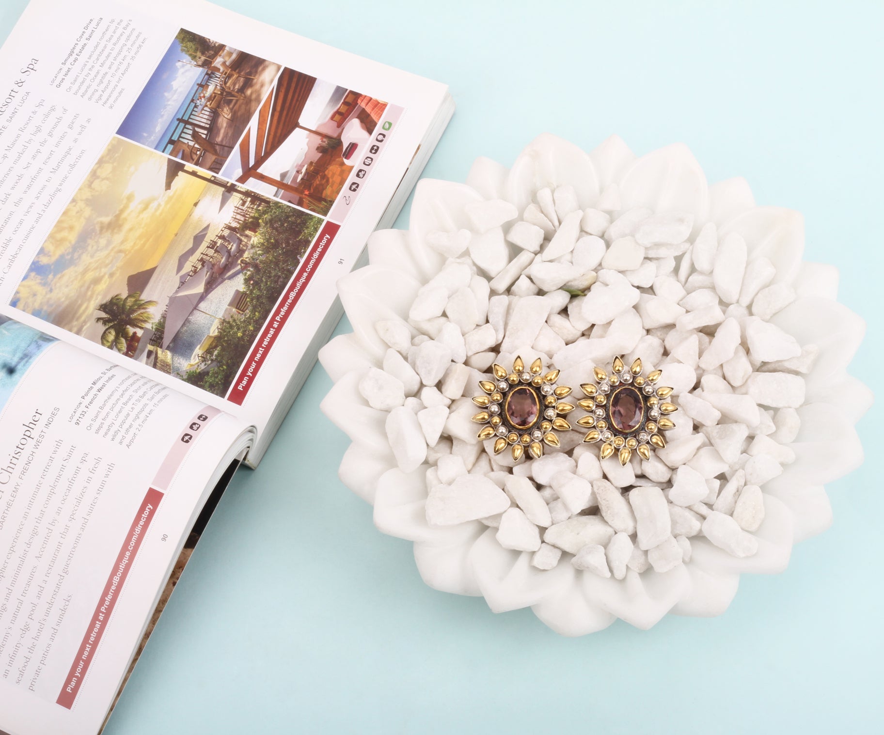 Handcrafted Silver Earrings With 24k Gold Plated And Hydro Coloured Glass Stone