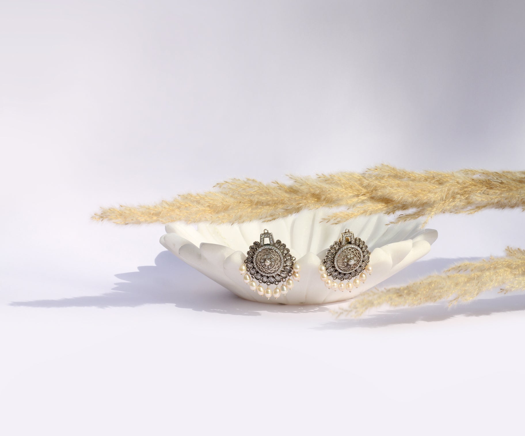 Handcrafted Silver Earrings With CZ Stone, By Hanging Pearls
