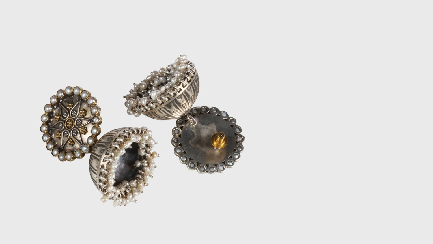 | A Beautifully handcrafted jhumka earrings in floral design with pearls. |