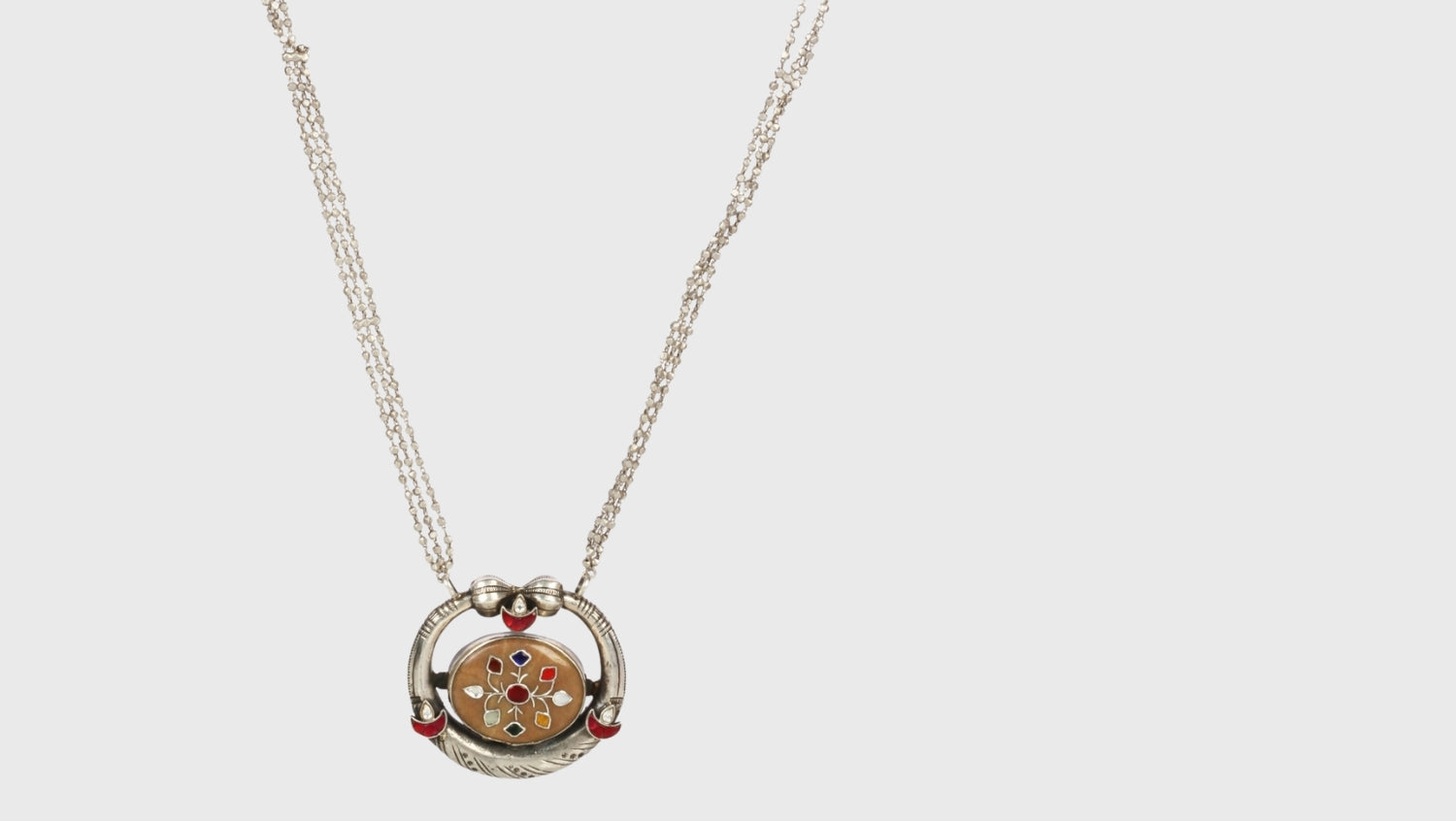 Bask in the splendour of this pendant from Sangeeta Booochra. This pendant is crafted thoughtfully from 925 sterling silver and is sure to mesmerize everyone around you. It comes with a combination of beads chain and kundan worked pendant. both gives it a unique touch to the entire piece.