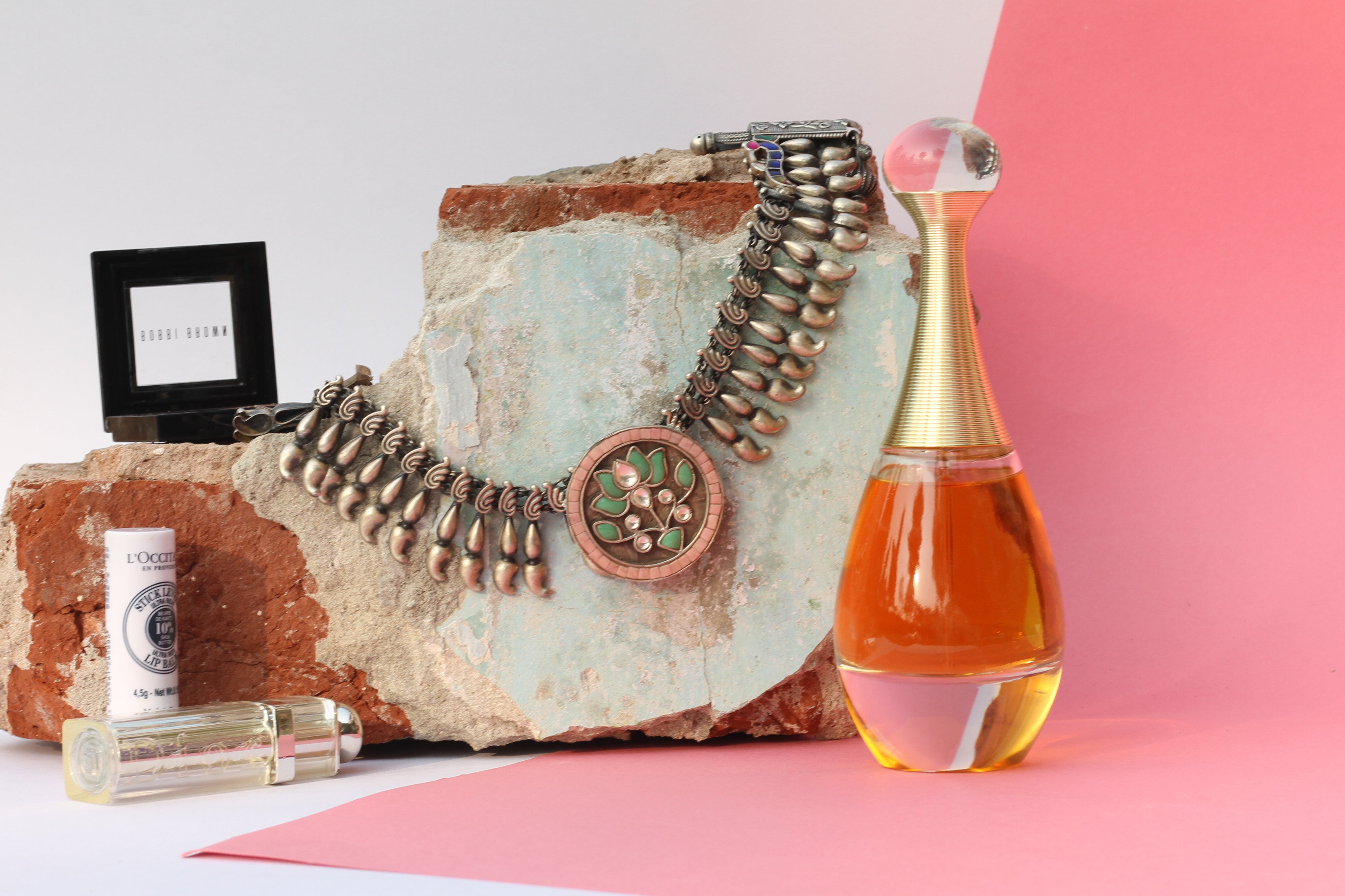 Handcrafted Silver Necklace With Kundan, Emerald And Semi Precious Stone