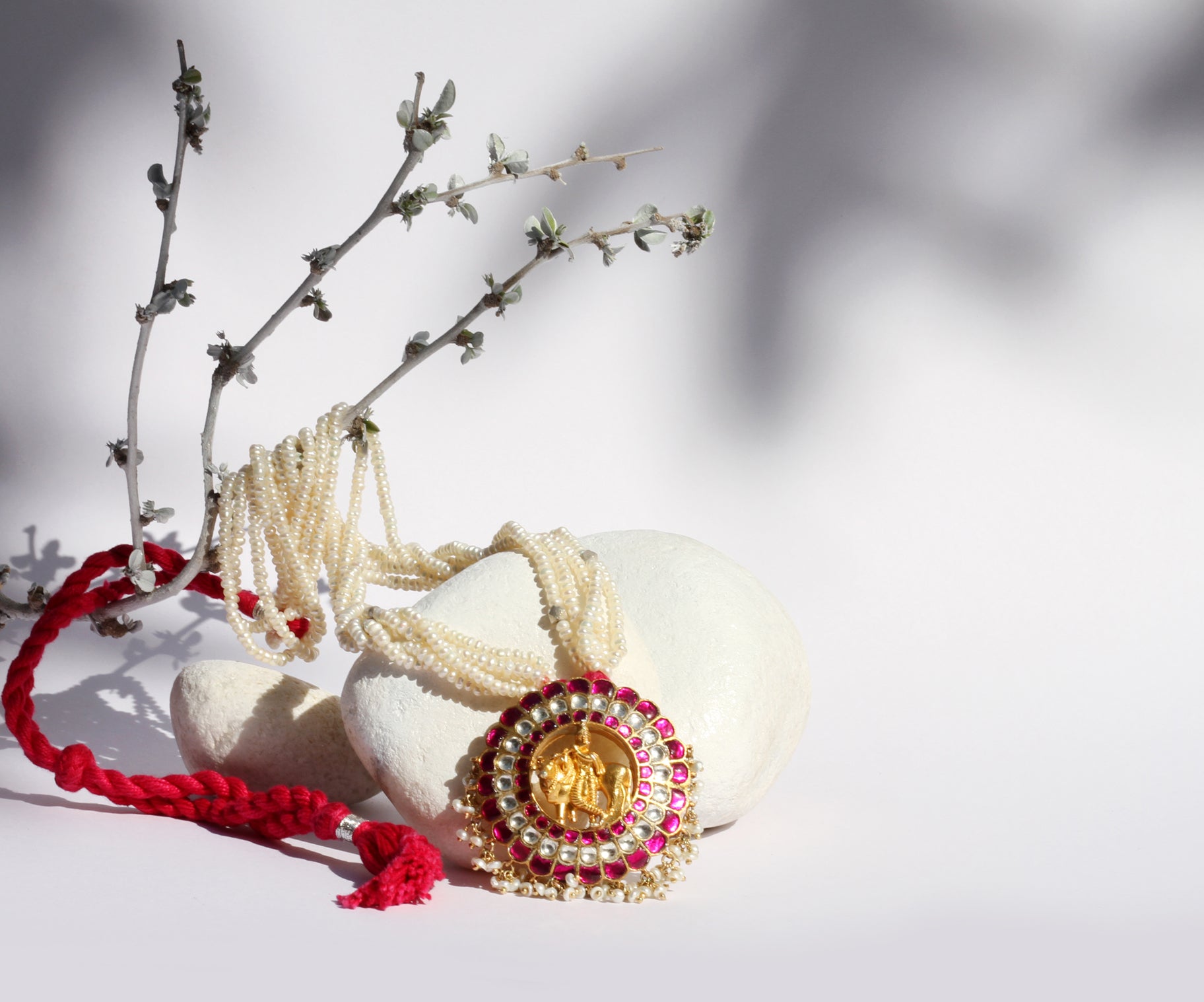 Handcrafted Silver Necklace With 24k Gold Plating And Kundan And Pink Stone