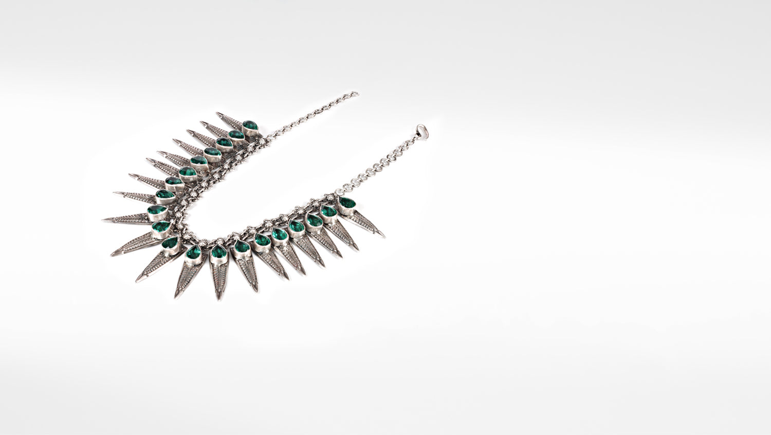 Revolutionize your fashion quotient by beautifying yourself with this necklace from Sangeeta Boochra. This necklace is crafted from silver that is sure to catch your glance at the very first instance. The eye-catching design reflects eccentric workmanship.