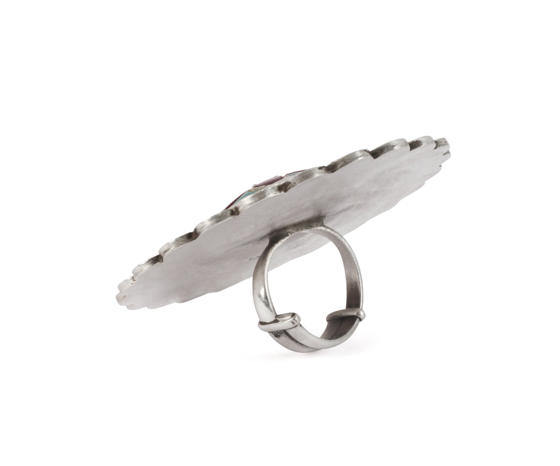 Shape a feminine style effortlessly by wearing this ring from Sangeeta Boochra. This ring is fashioned with care using 925 sterling silver that will accentuate your look in an instance. It is embellished with kundan which makes it even more eye pleasing. It has a unique design with intricate pattern.