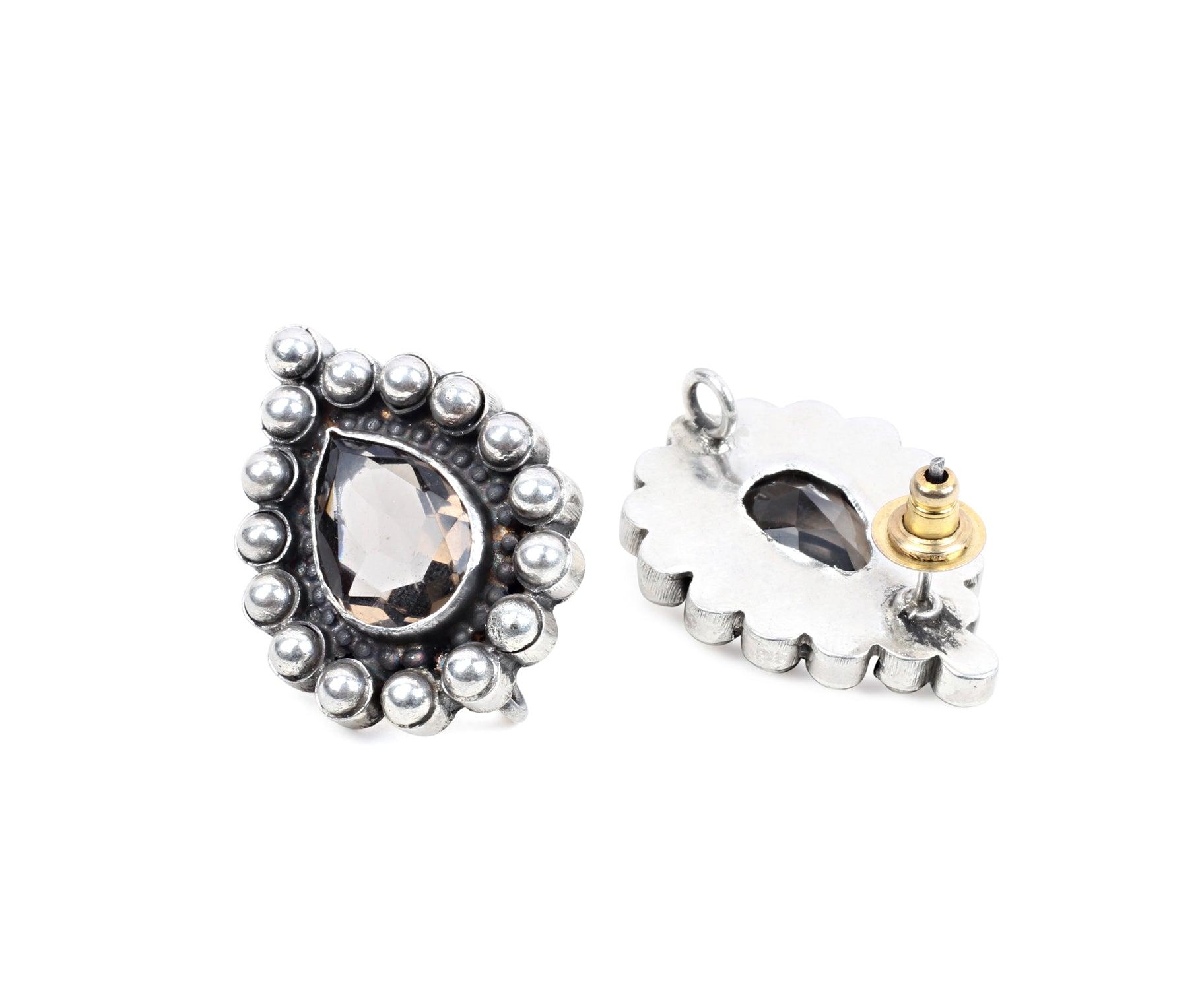 Handcrafted Silver Earrings With Hydro Coloured Glass Stone