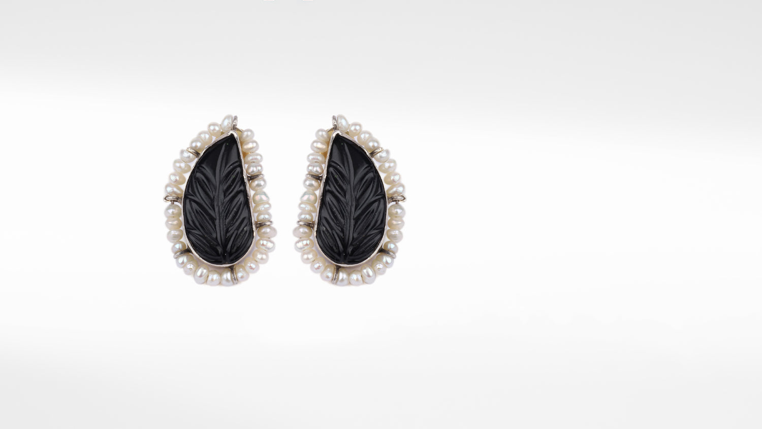 Silver Handcrafted Black Onyx Earrings with Pearls