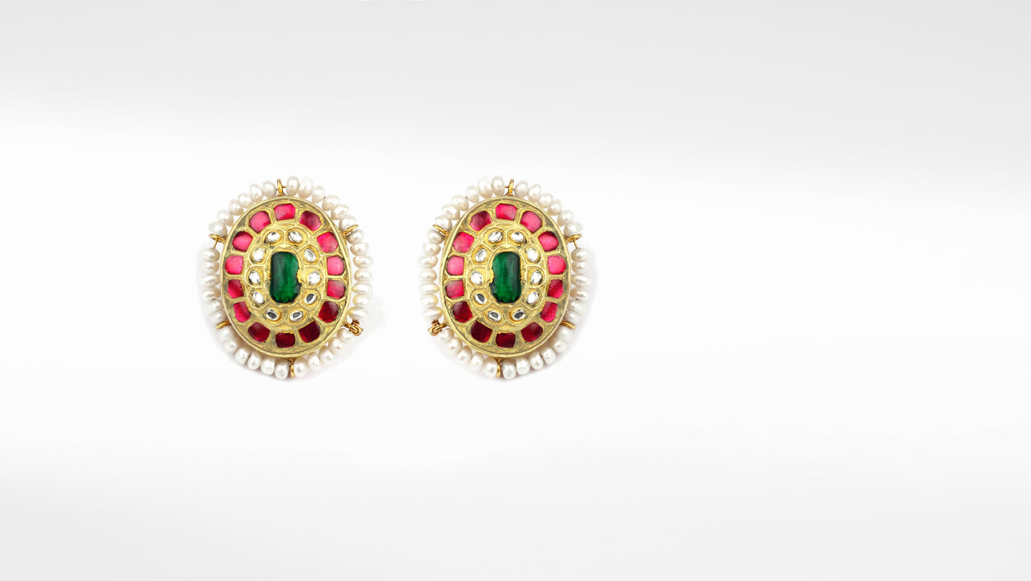 Silver Handcrafted Earring with Kundan Motifs and Pearls