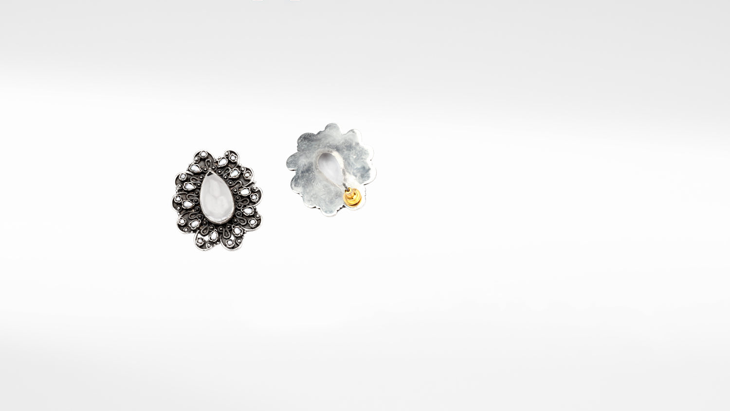These silver handcrafted oxidized earrings with Kundan are a stunning fusion of traditional elegance and contemporary style. Each earring is meticulously crafted by skilled artisans, featuring a sterling silver base that has been oxidized to create a darkened, antique finish. The combination of oxidized silver and Kundan lends these earrings a unique and sophisticated look, making them perfect for both traditional and contemporary outfits. Whether worn for a special occasion or as an everyday accessory, they are sure to make a statement and turn heads wherever you go.