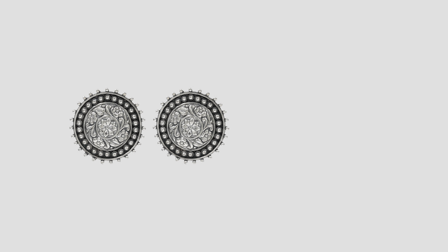 Add a touch of tradition with these handcrafted silver studs by Sangeeta Boochra. Designed with intricate floral detailing and oxidised finish, they reflect timeless elegance for every occasion.