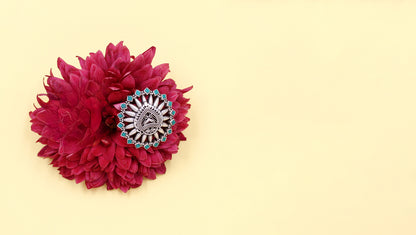 Celebrate timeless tradition with this intricately crafted 925 silver ring, adorned with green touches for a unique charm.